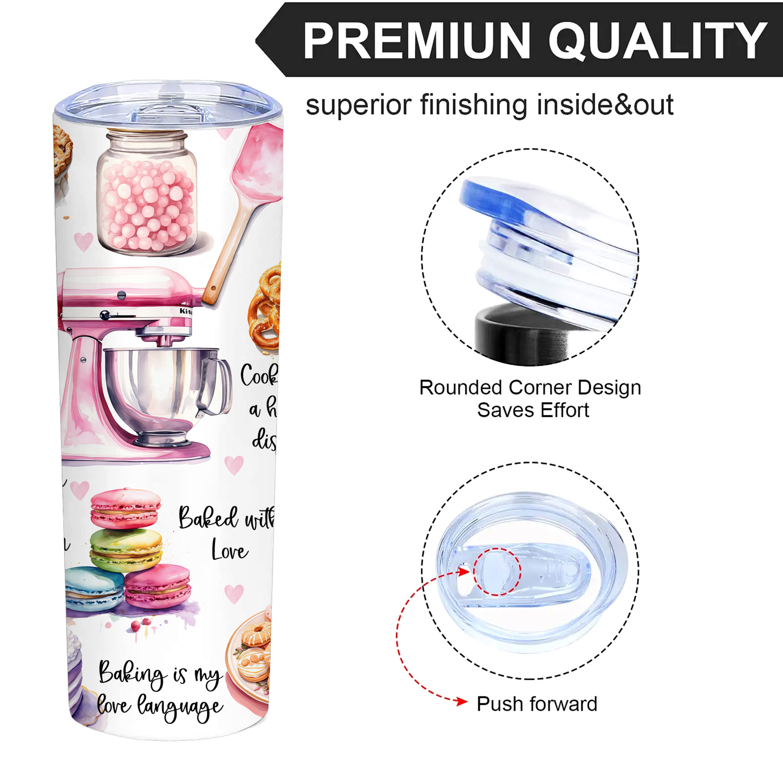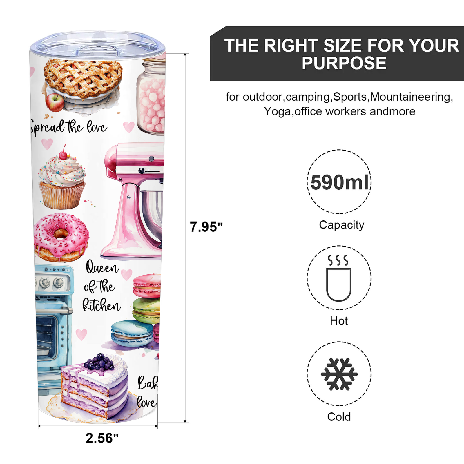 Baking Tumbler,Cute Baker Tumblers,20 OZ Insulated Vacuum Skinny Tumbler,Gifts for Mother,Friend,Colleague,Women,Girls,Family,1 Pcs