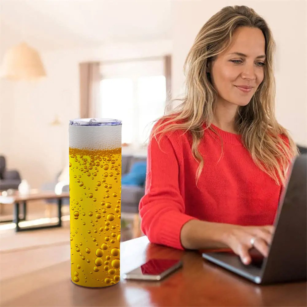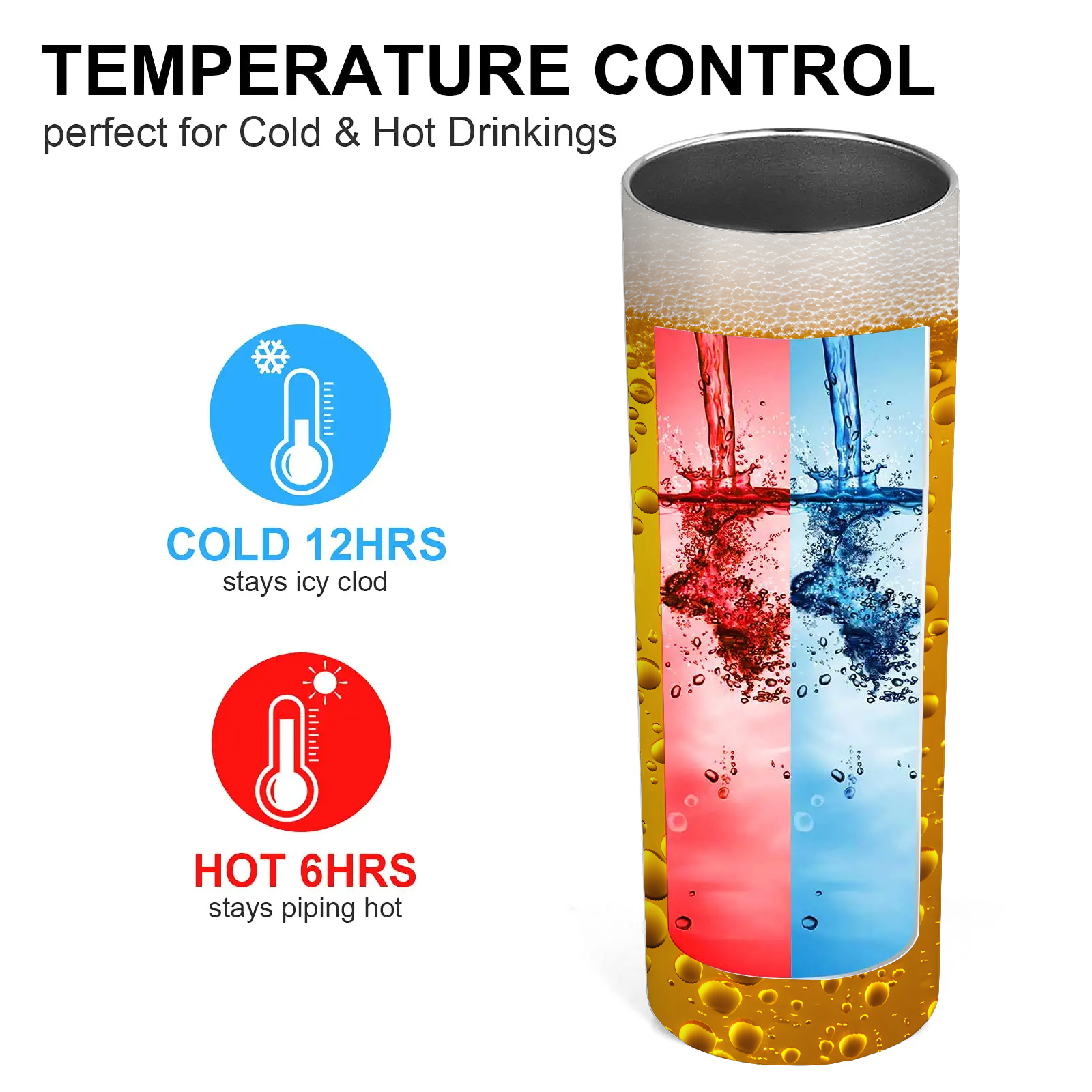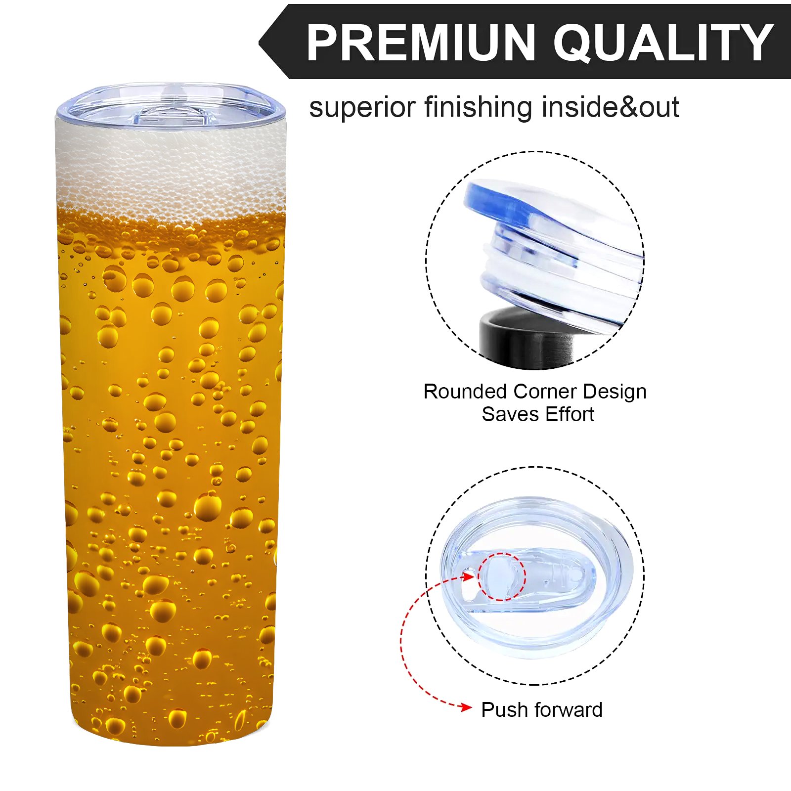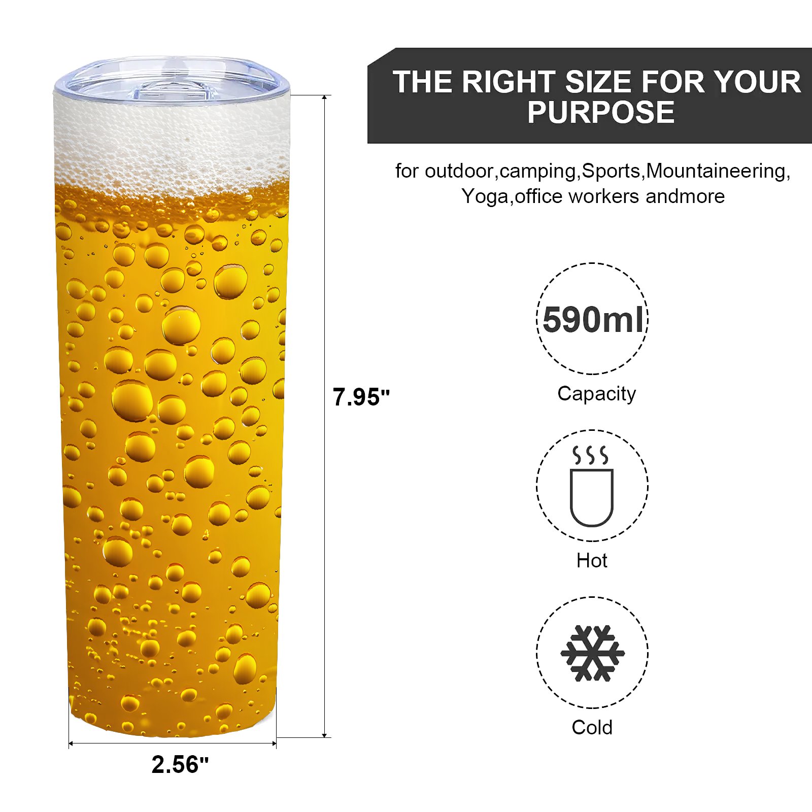 Beer Sublimation Tumblers 20 Oz,Gifts for Beer Lovers,20 OZ Insulated Vacuum Skinny Tumbler with Lid,Gifts for Father,Friend,Women,Men