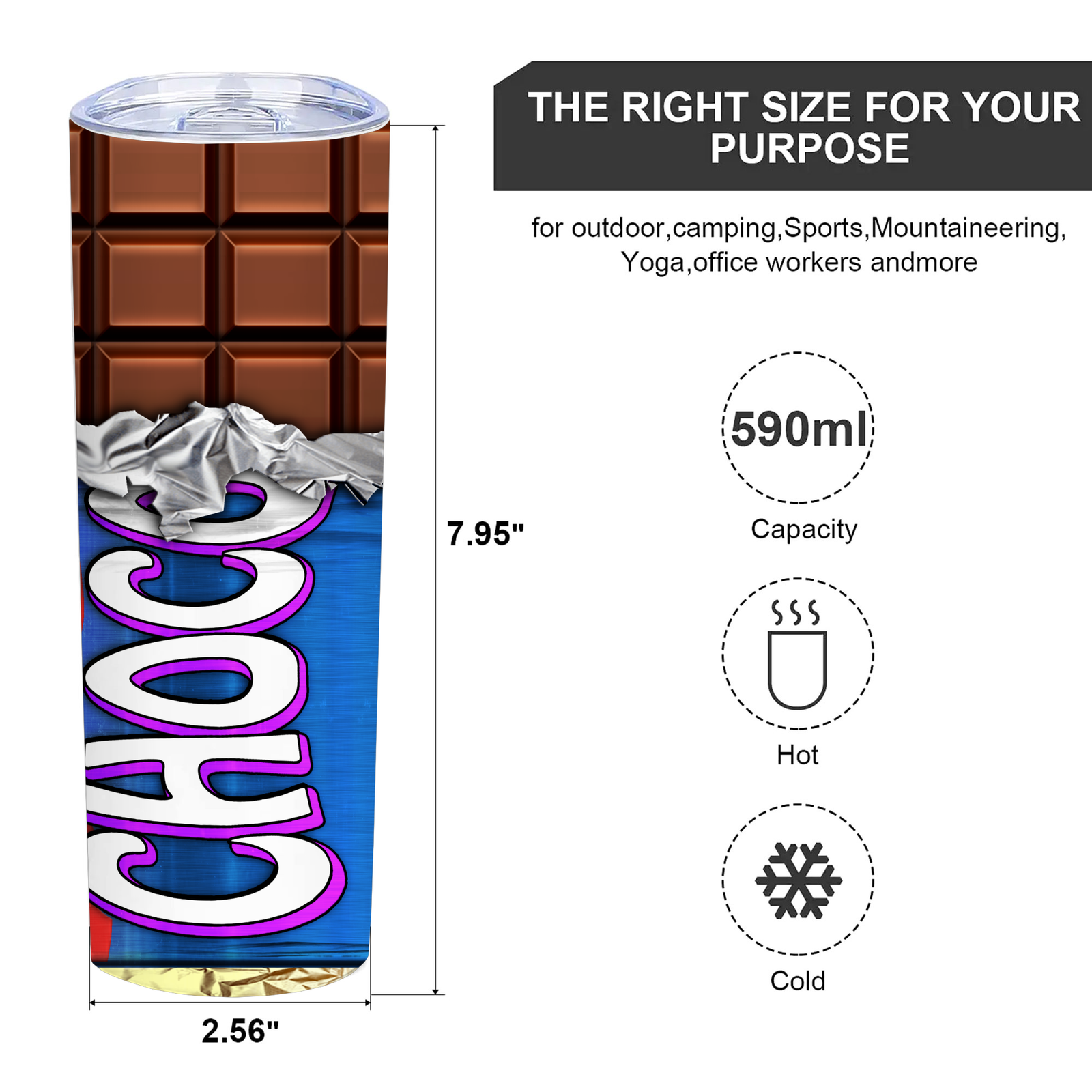 Chocolate Bar2,Funny Tumbler,20 OZ Insulated Vacuum Skinny Tumbler,Gifts for Friend,Classmate,Women,Men,Boy,Girls,1 Pcs