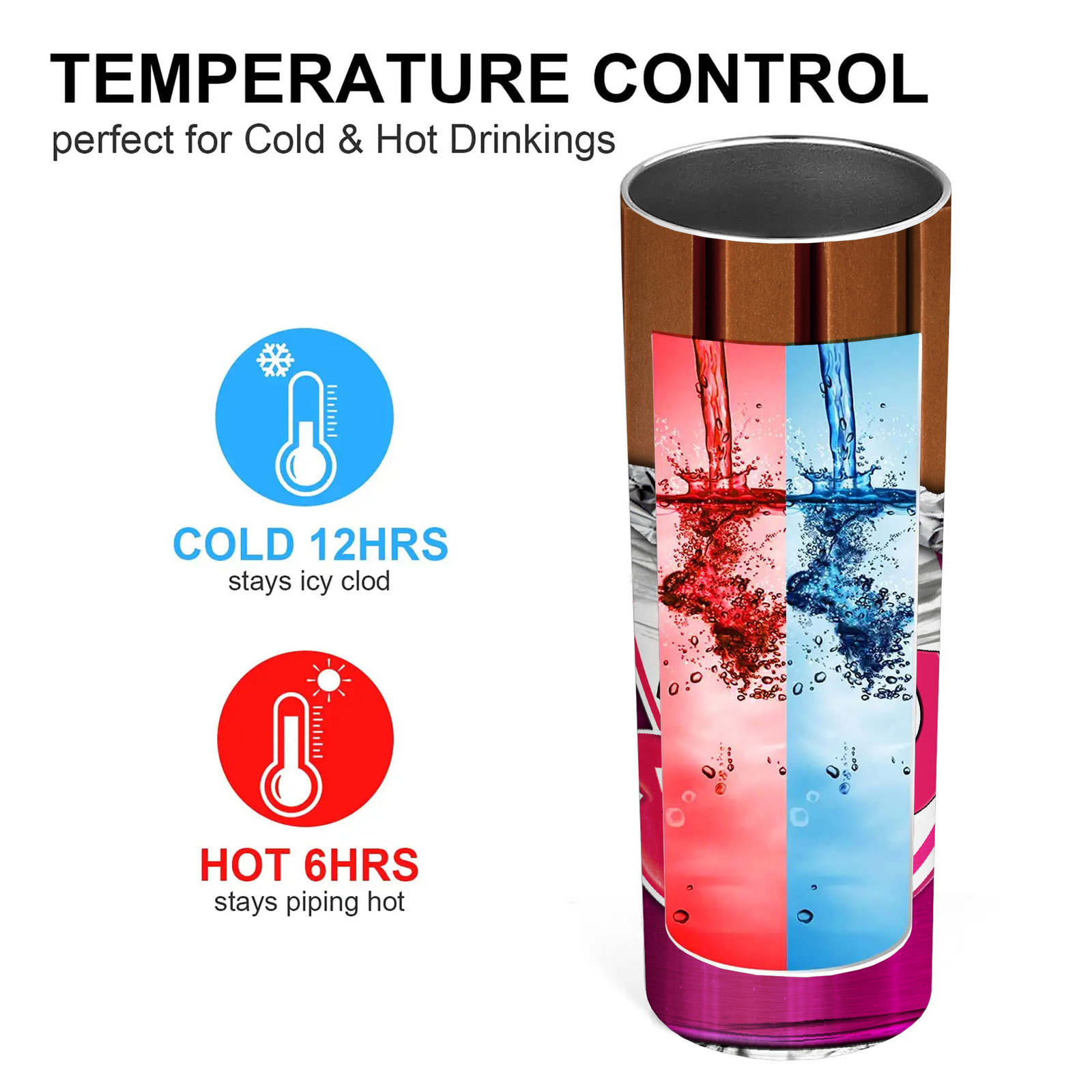 Vacuum Insulation: We use double-wall vacuum insulation technology to keep your favourite drinks hot for more than 6 hours or cold for 12 hours!The excellent insulation effect enables you to enjoy your beverage at the perfect temperature, no matter where you are