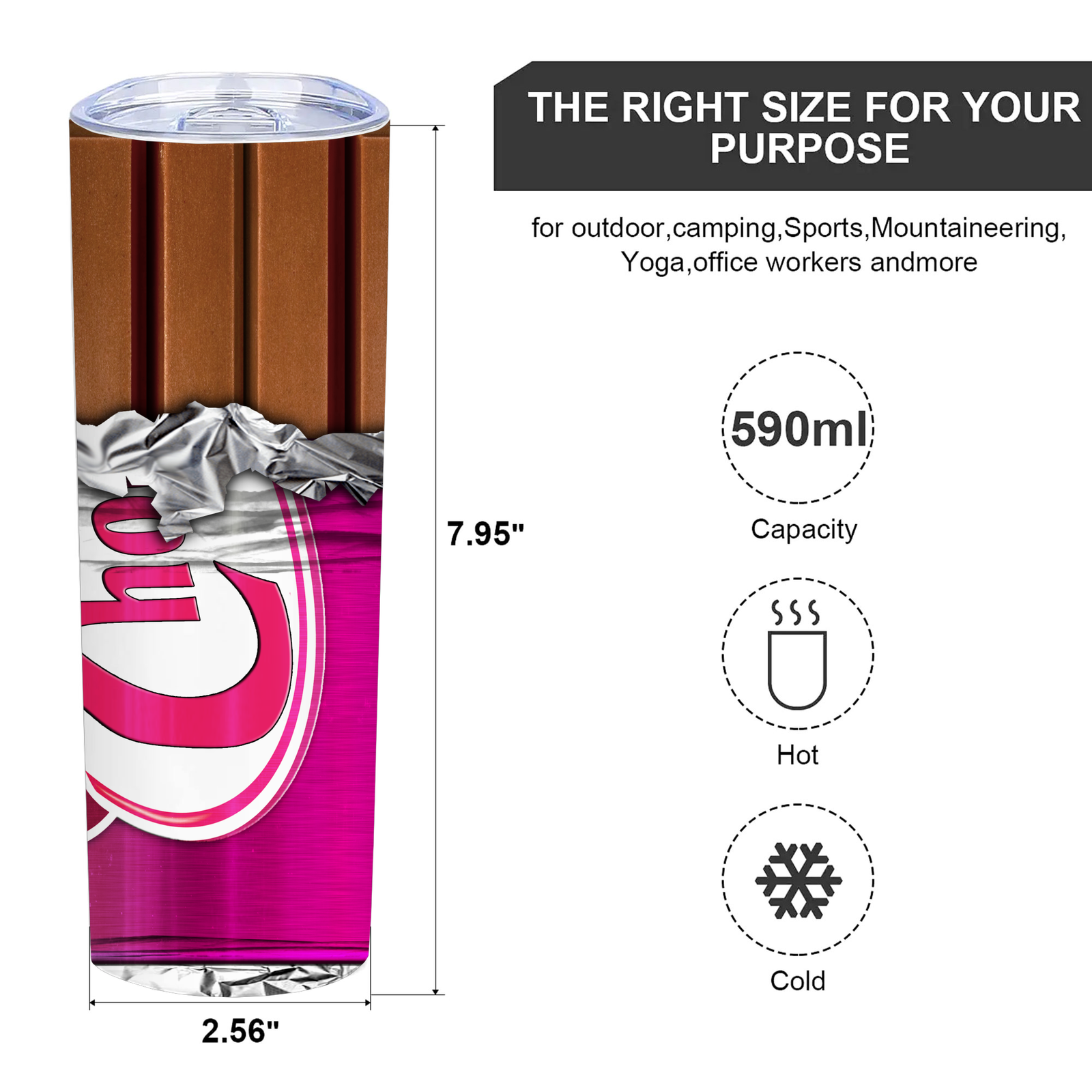 chocolate tumbler,funny tumbler,20 OZ Insulated Vacuum Skinny Tumbler,Gifts for Friend,Classmate,Women,Men,Boy,Girls,1 Pcs