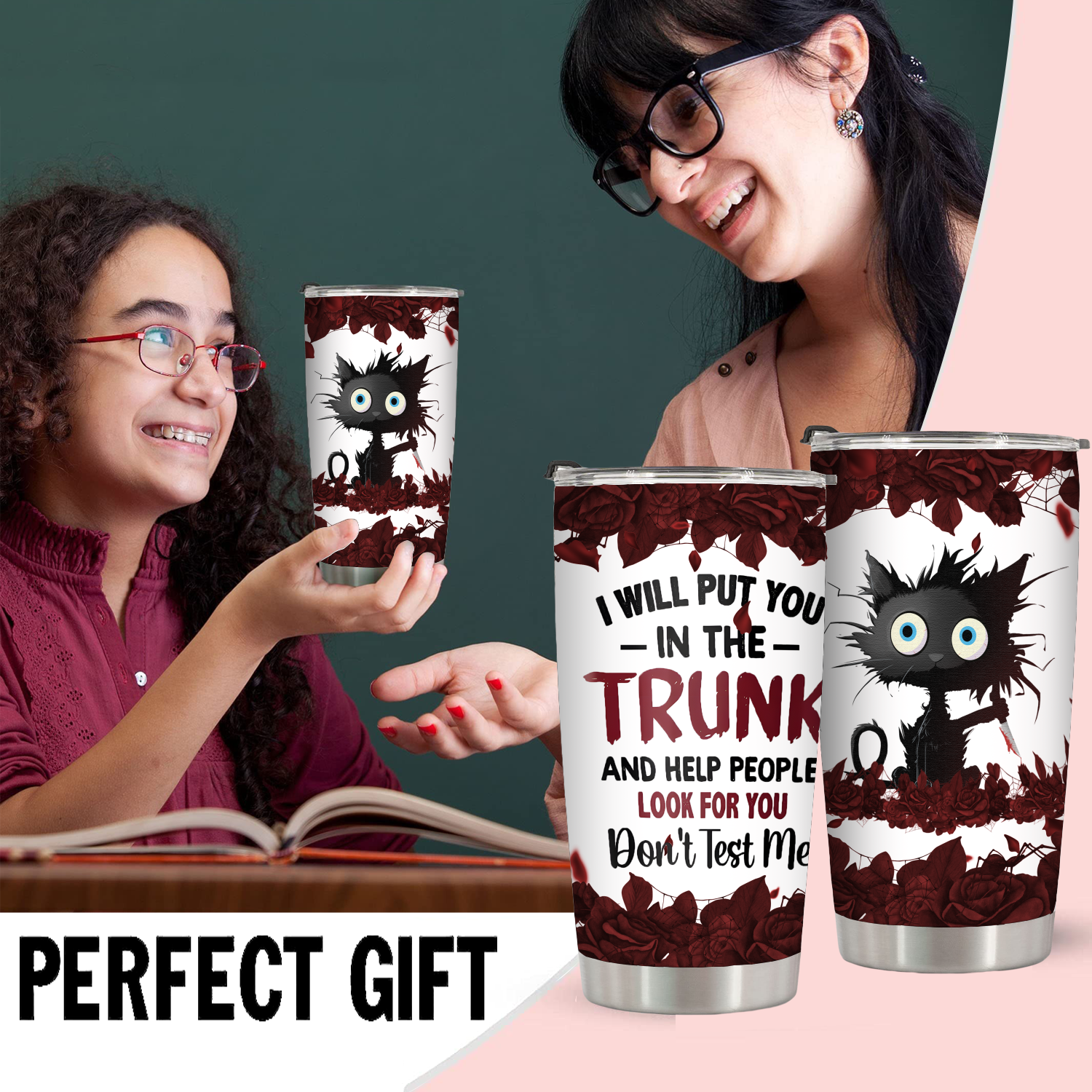 Creative Humor Travel Tumbler - "Don't Mess with Me", Crazy Cat Lady Gift, 20 OZ Stainless Steel Insulated Tumbler, Gifts for Friend,Women,Girls,Girlfriend,1 Pcs