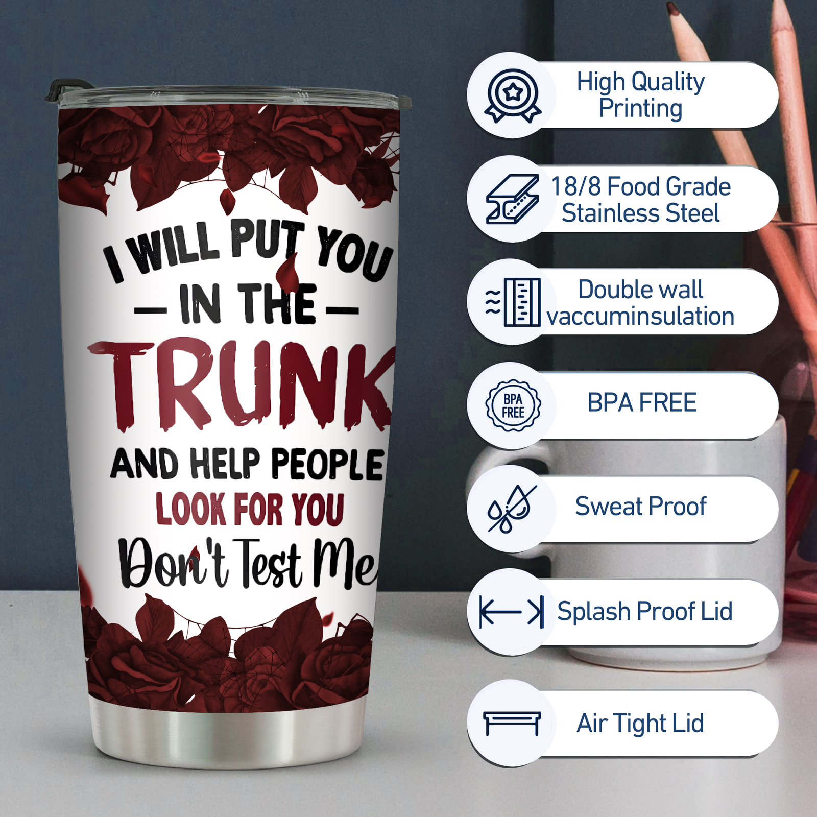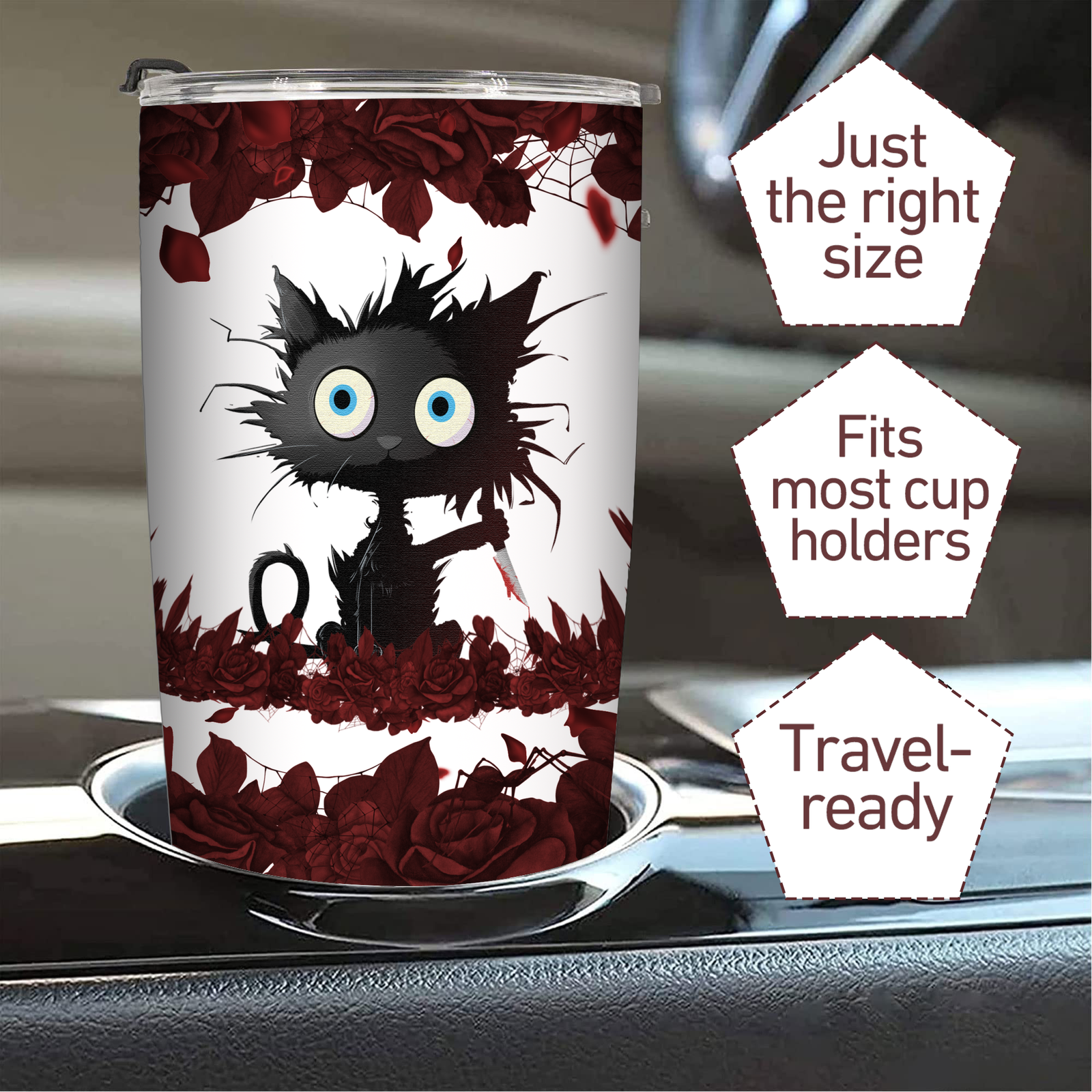Capacity: Our 20oz tumbler is the perfect size for your all-day needs! Its compact and convenient design is ideal for both work and outings. The tumbler's size makes it easy to carry around with you and fits most car cup holders