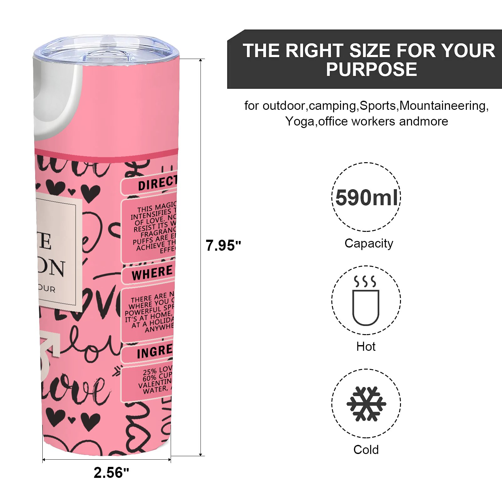 Cute Pink Tumblers for Women,Funny Pink Cups,20 OZ Insulated Vacuum Skinny Tumbler with Lid,Gifts for Wife,Women,Girlfriend,1 Pcs