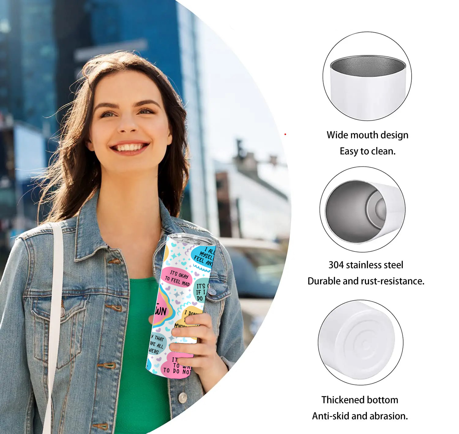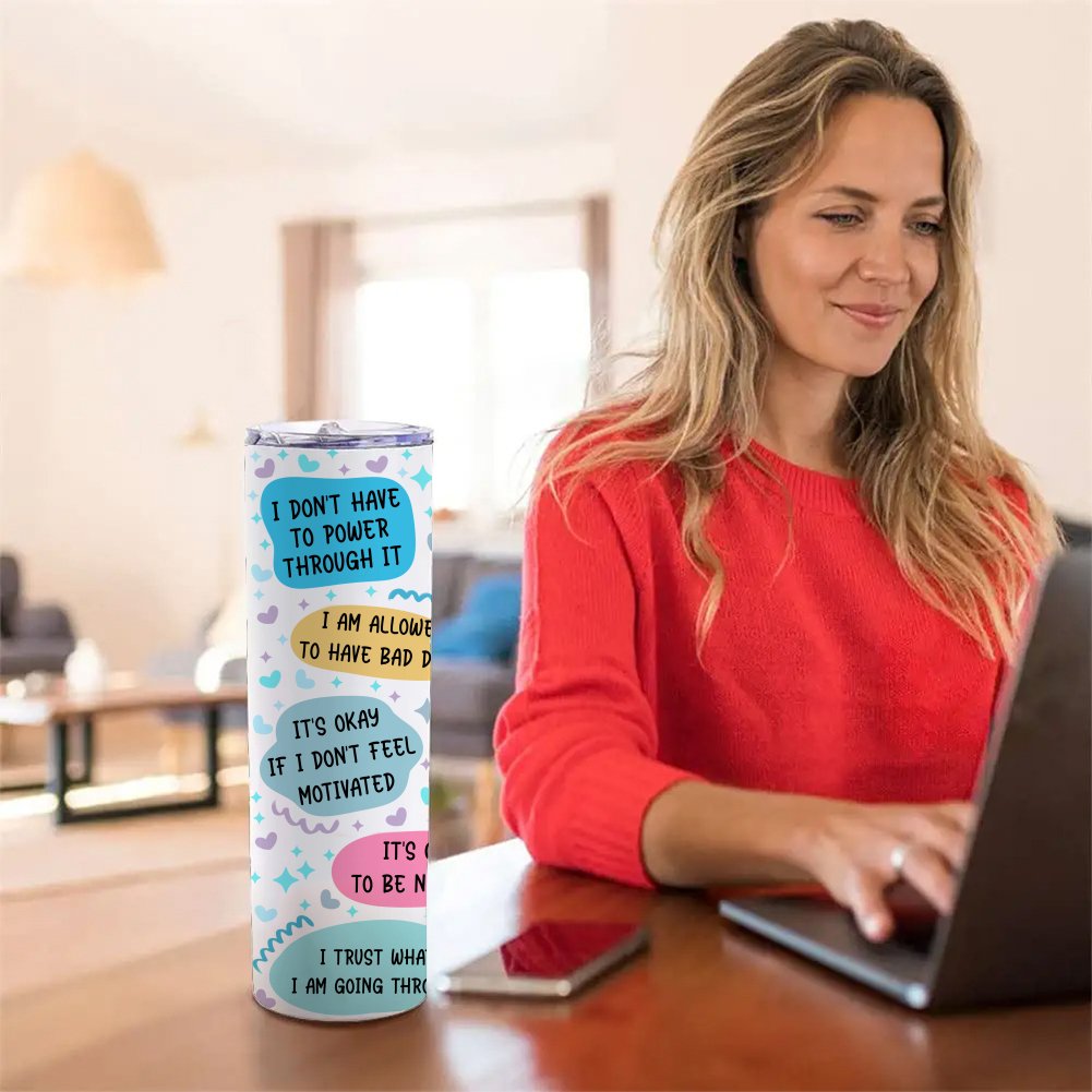 Daily Affirmations Skinny Tumbler 20 Oz - Inspirational Quotes Coffee Mug - Women Gifts - Birthday Gifts