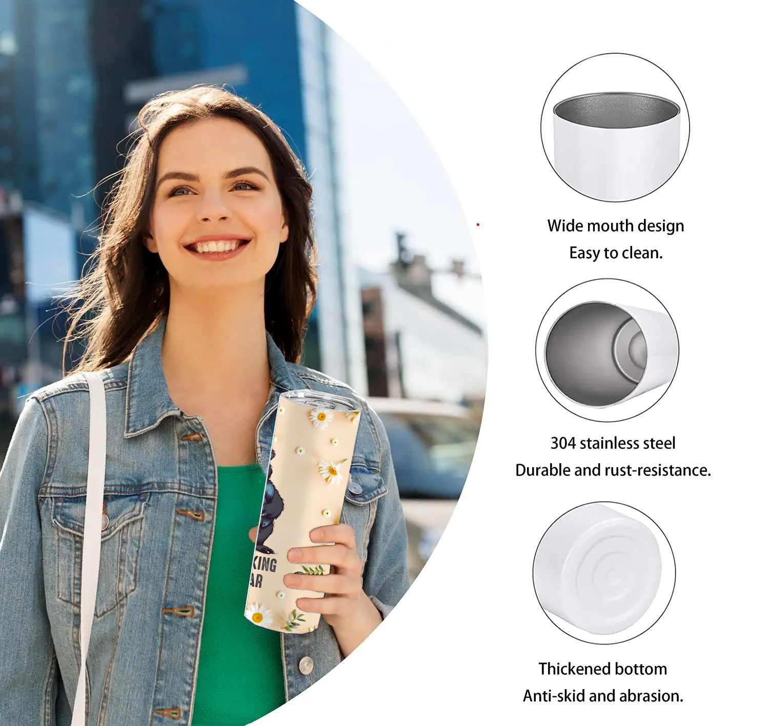 【Material】Made from 18/8 food grade,lightweight, lead free stainless steel and BPA free sip lid that allows you to take your drink on the go.