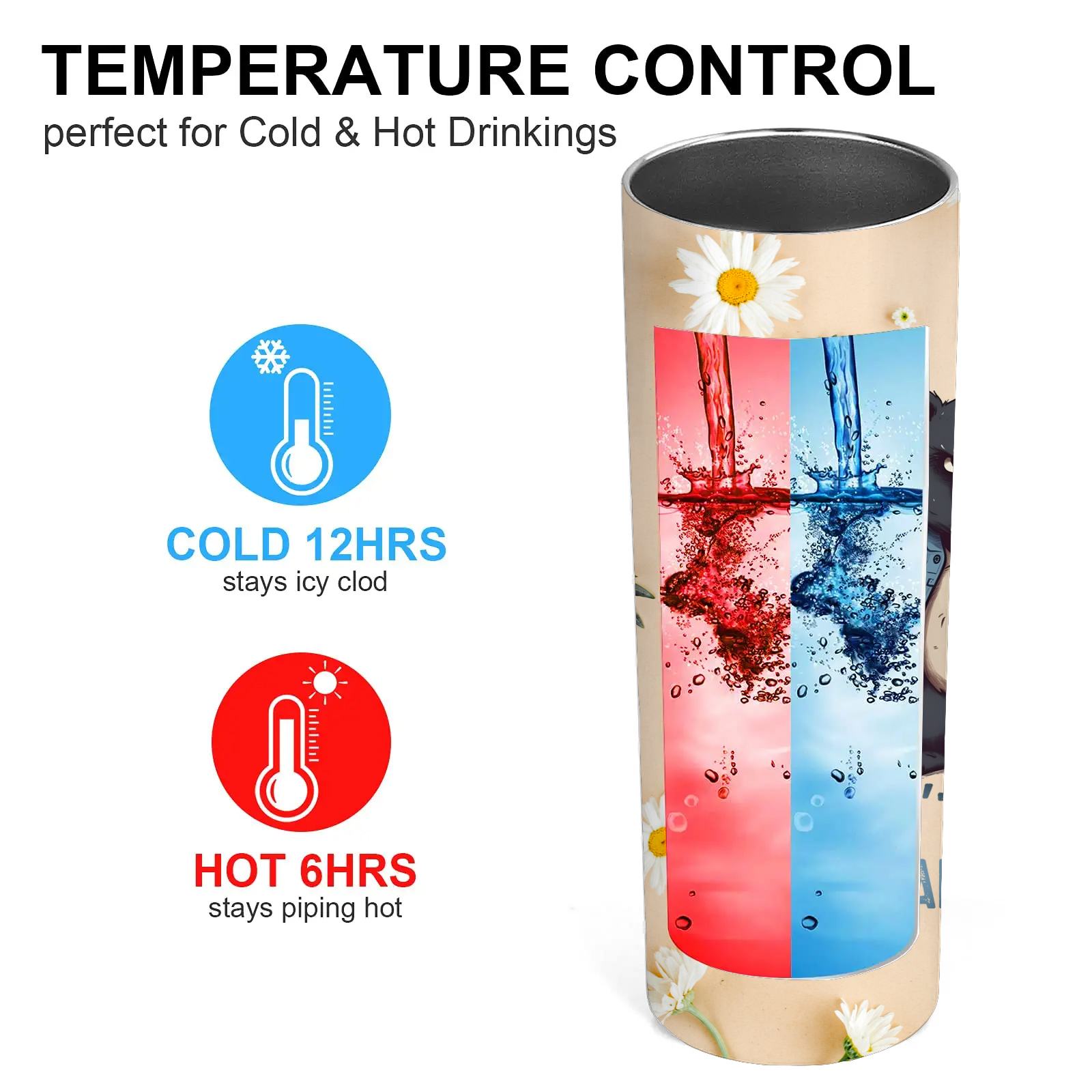 【Temp Control】This tumbler Keeps your drinks hot for over 6 hours or icy cold for a remarkable 12 hours!