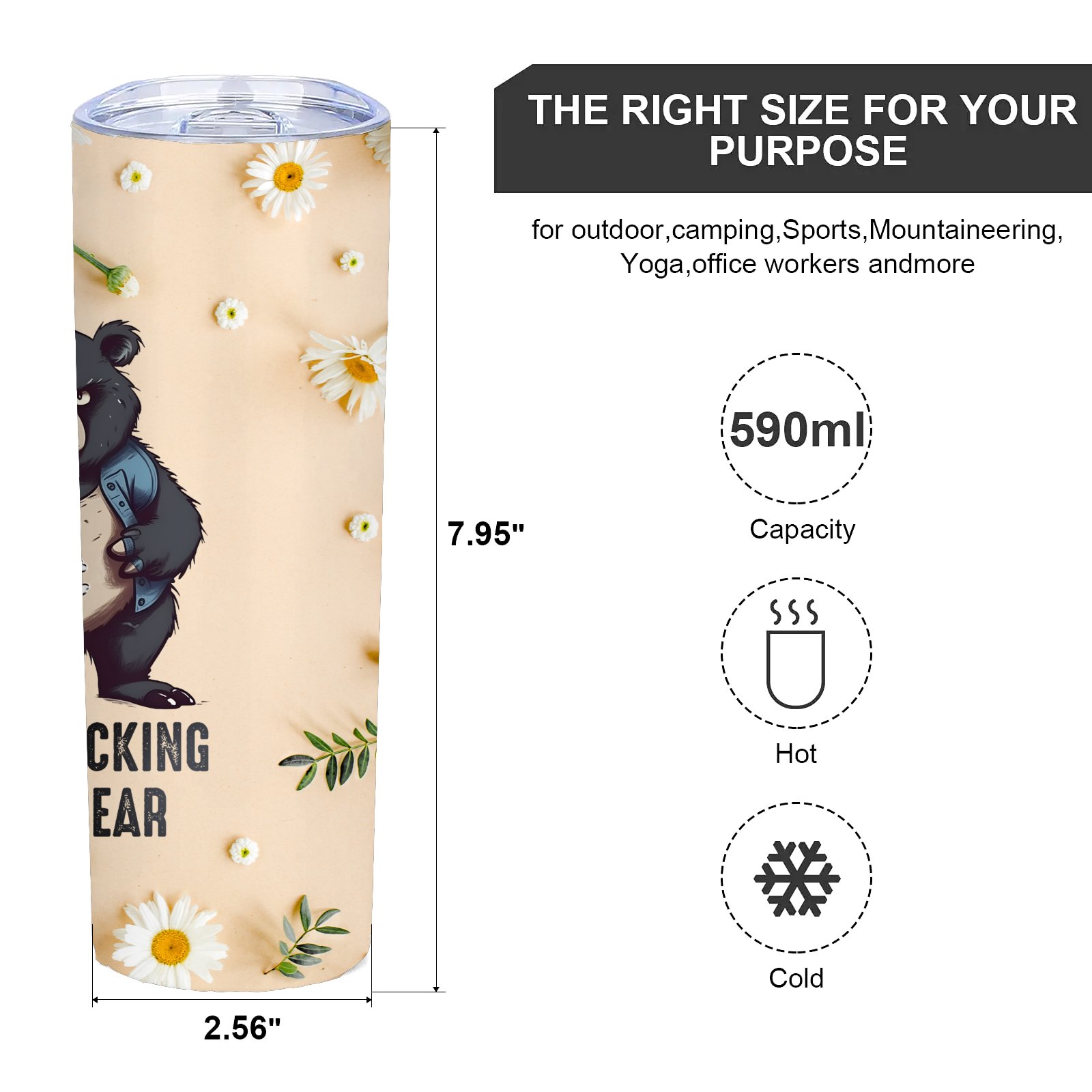 Funny Bear Skinny Tumbler 20 Oz - Animal Jokes Tumbler - Coworker,Men Gifts - Fathers Day Gifts
