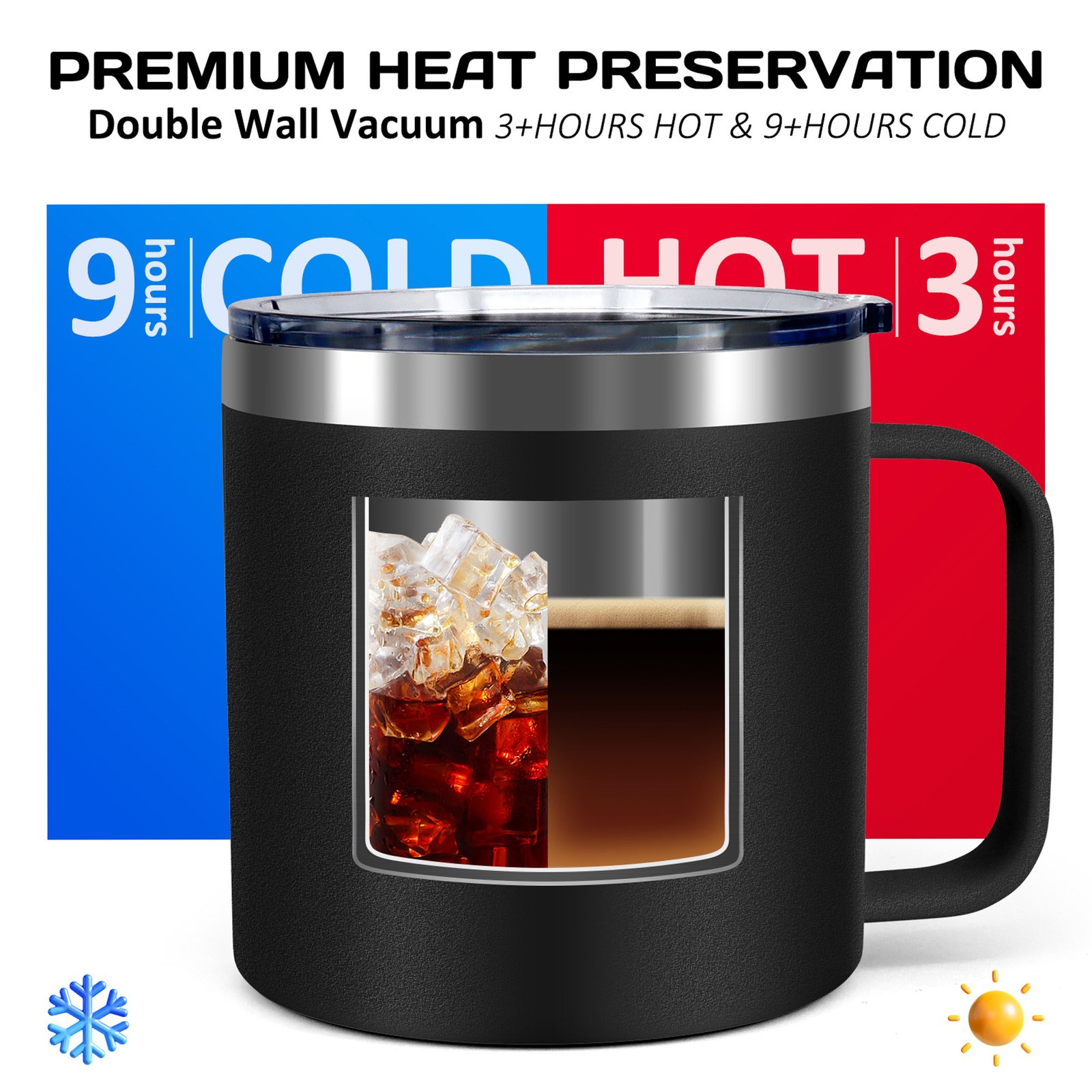 Vacuum Insulation: We use double-wall vacuum insulation technology to keep your favourite drinks hot for more than 6 hours or cold for 12 hours!The excellent insulation effect enables you to enjoy your beverage at the perfect temperature, no matter where you are