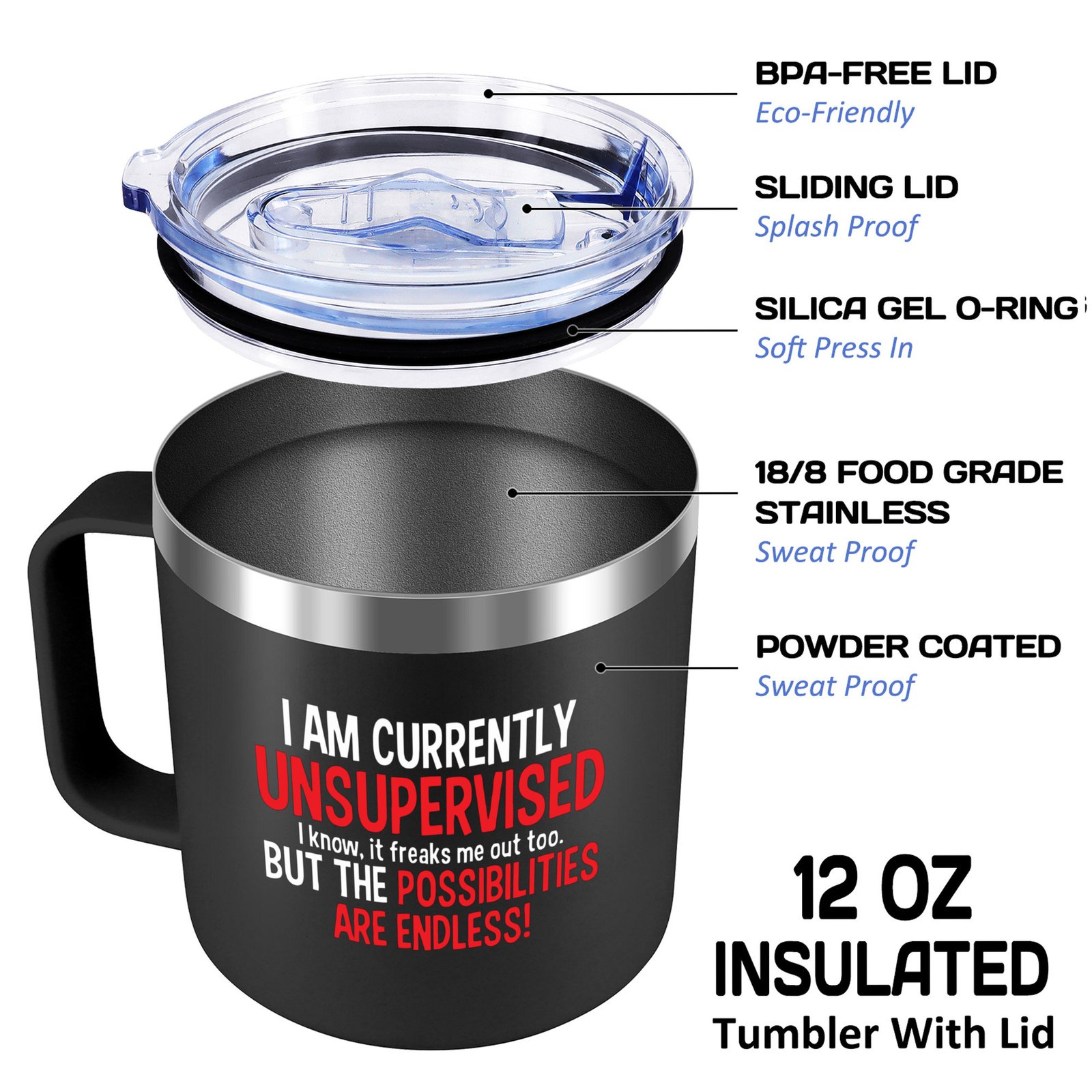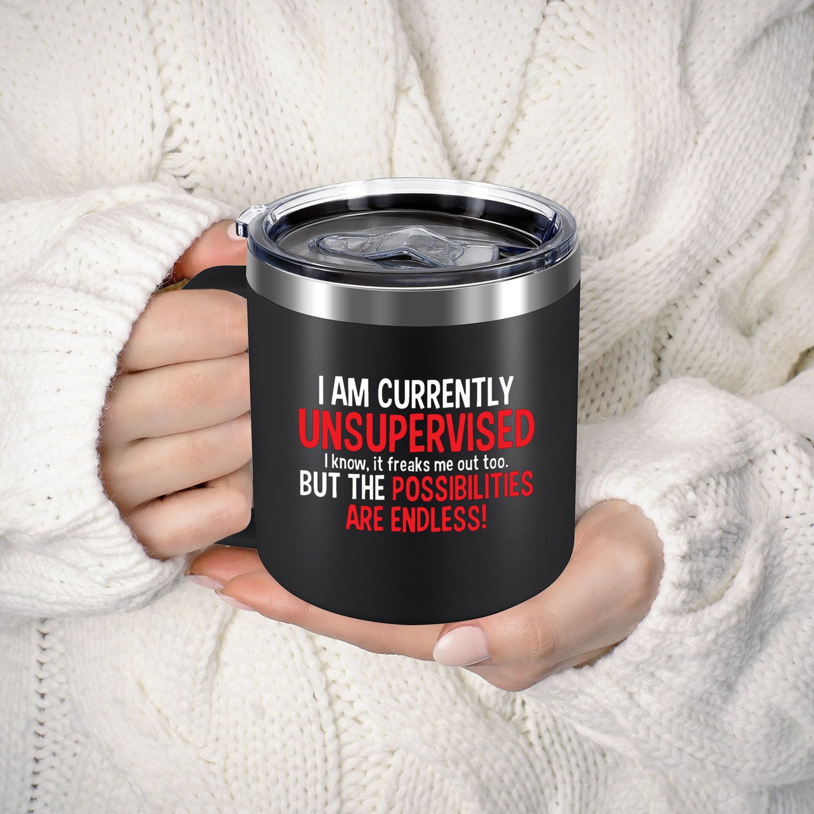 I Am Currently Unsupervised,Funny Travel Coffee Mugs,12 Oz Stainless Steel Insulated Coffee Mug,Gifts for Women,Men