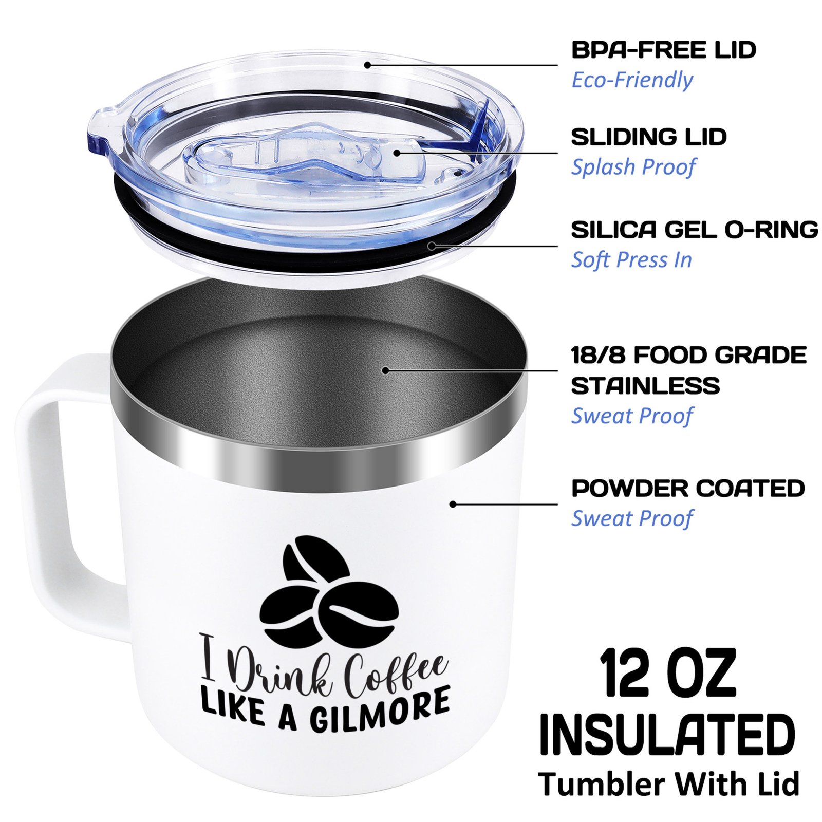 I Drink Coffee Like A Gilmore,Gilmore Girls Merchandise,12 Oz Stainless Steel Insulated Coffee Mug,Gifts for Friend,Women