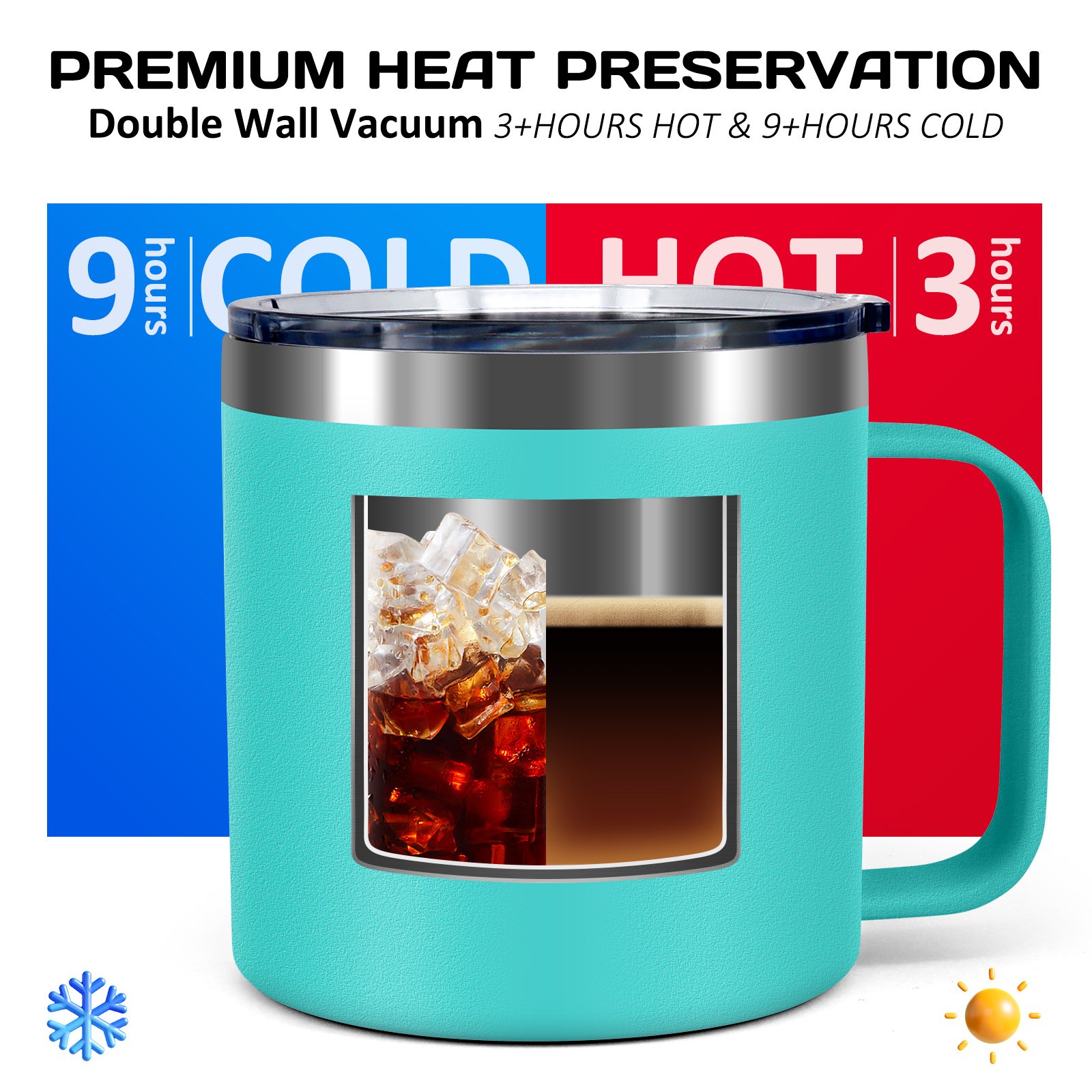 Vacuum Insulation: We use double-wall vacuum insulation technology to keep your favourite drinks hot for more than 6 hours or cold for 12 hours!The excellent insulation effect enables you to enjoy your beverage at the perfect temperature, no matter where you are