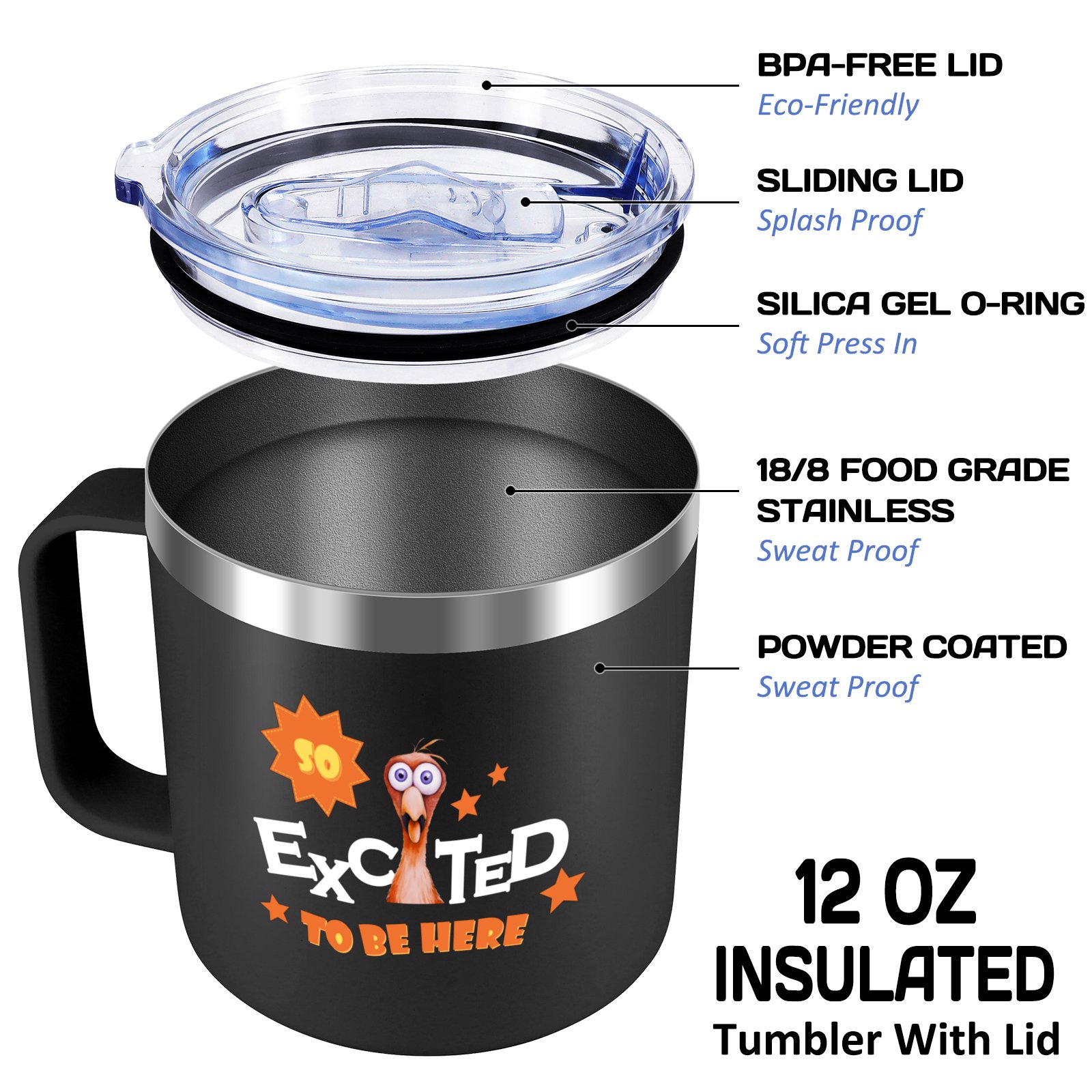 Capacity: Our 12oz tumbler is the perfect size for your all-day needs! Its compact and convenient design is ideal for both work and outings. The tumbler's size makes it easy to carry around with you and fits most car cup holders
