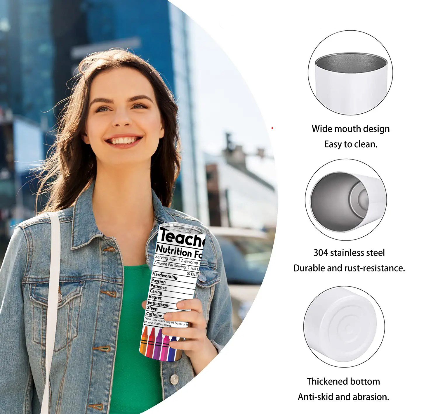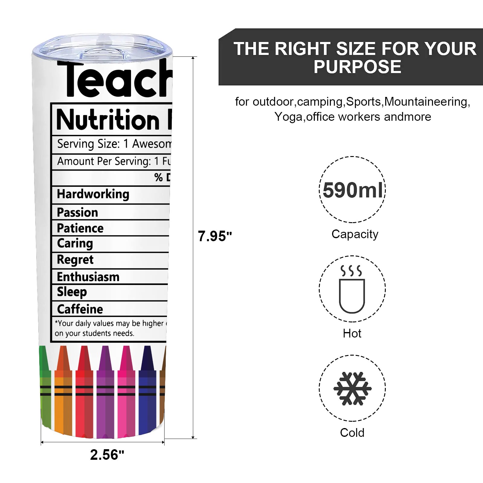 Teacher Nutrition Facts Crayons 20 Oz Skinny Tumbler Great for Graduation,Teacher's Day As a gift for Mentor,Teacher for Showing Appreciation