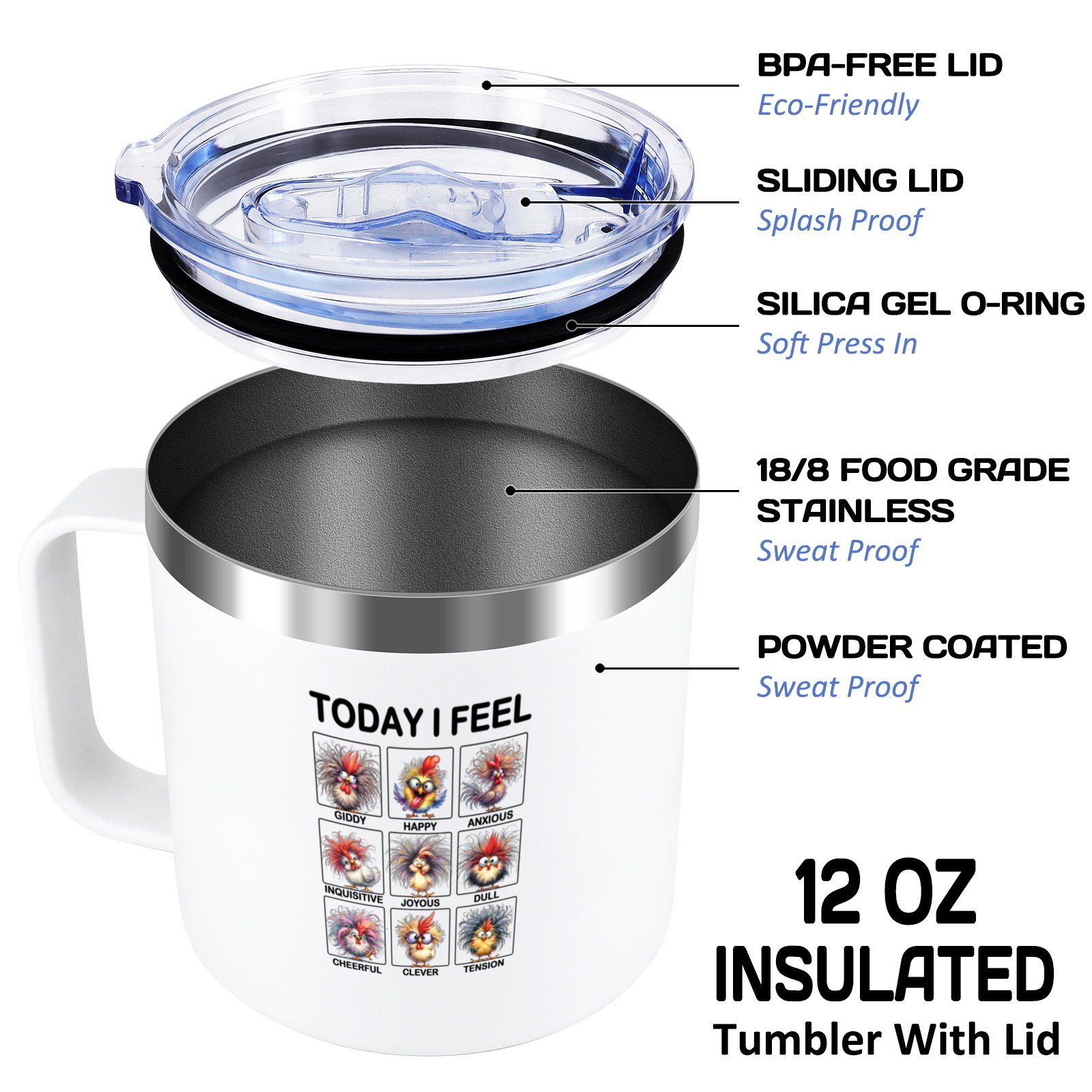 Today Feel Coffee Mug,Today Feel Coffee Mugs,12 Oz Stainless Steel Insulated Coffee Mug - Gifts for Sister,Friend,Women,Men,Boy,Girls