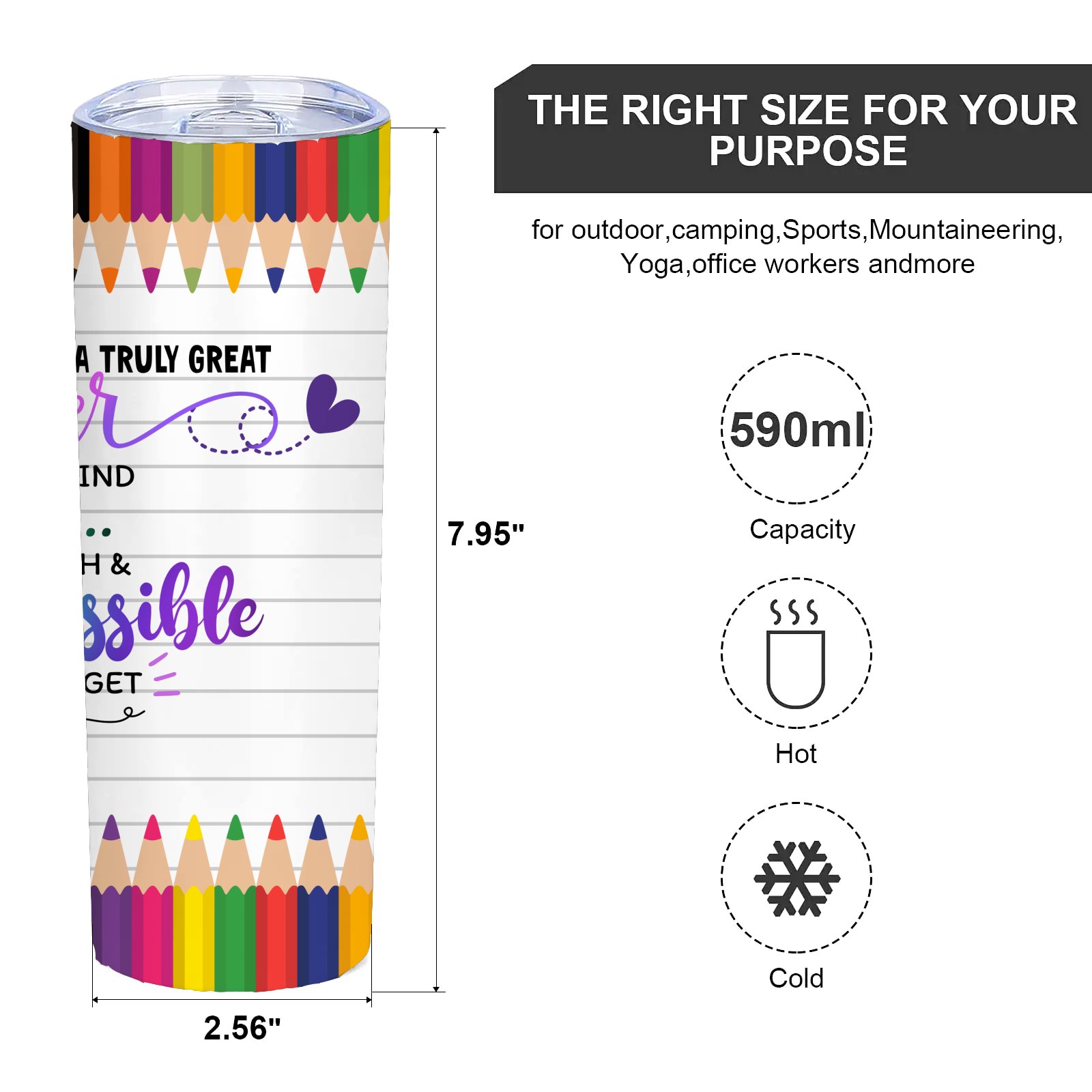 Truly Great Teacher 20 Oz Skinny Tumbler Great for Graduation,Graduation Party As a gift for Teacher for Showing Appreciation,Enhancing Relationships,Recognizing Achievements
