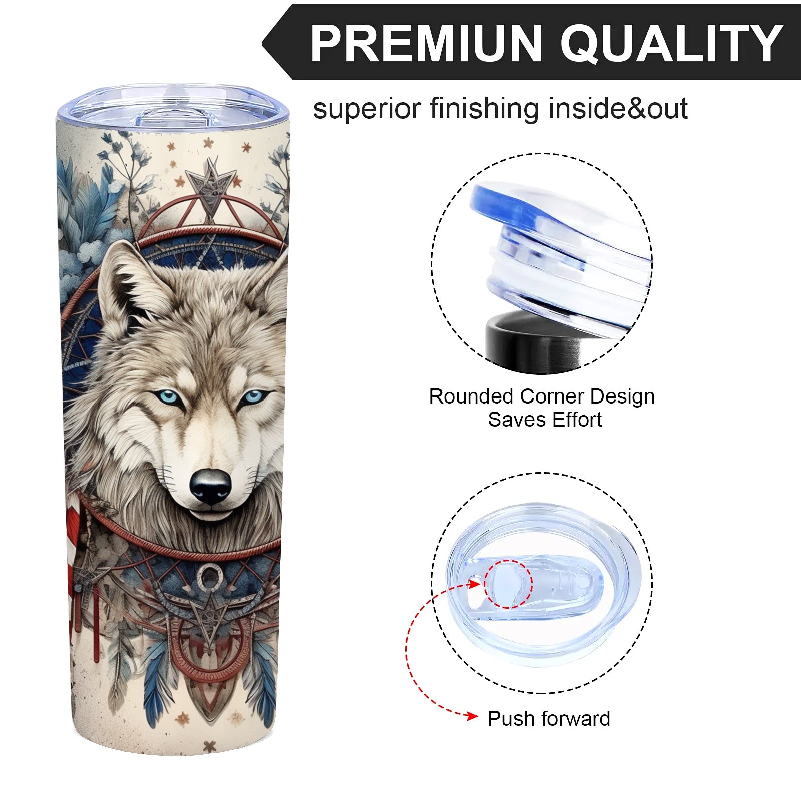 Wolf Animal Skinny Tumbler 20 Oz - Wolf Tumbler for Women - Women,Men Gifts - Valentines Day Gifts